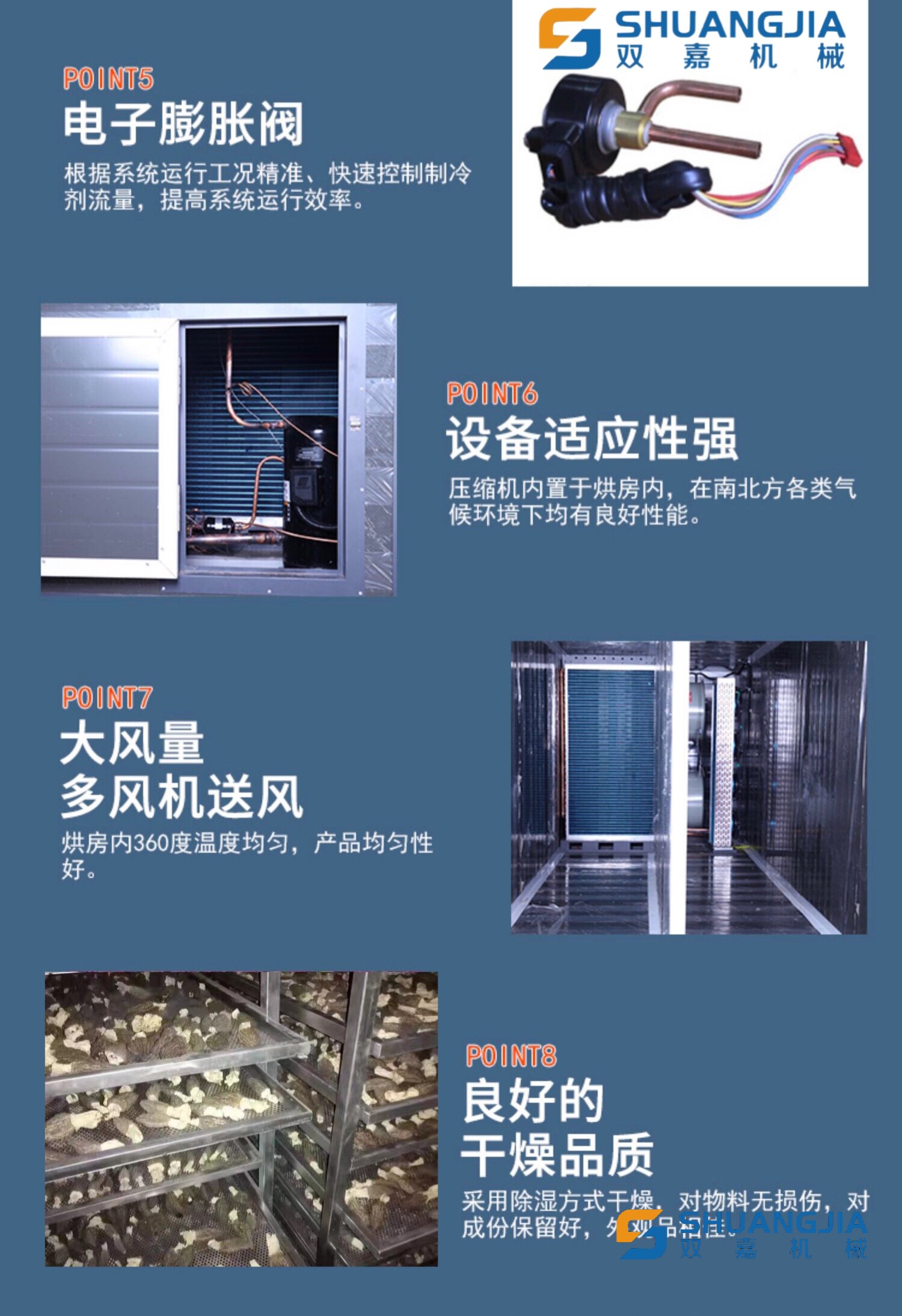 5、此款智能環(huán)保烘干機(jī)是目前市場上被客戶高度認(rèn)可的一款節(jié)能環(huán)保烘干機(jī) 。廣泛用于食用菌行業(yè)烘干羊肚菌、香菇、茶樹菇等各種菌類烘干,亦可用于烘干藥材、茶葉、海鮮、蔬果,花果等物料。